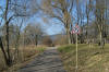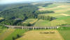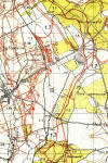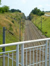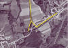 Auf einer Brücke (Foto unten) wurde die Eisenbahnlinie im 45°-Winkel überquert um dieser dann S entlang eines Feldweges (heute Strasse D 47, rechts im Foto) parallel zu folgen.
