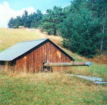 als Stall mit Dach, aufgemalten Fenstern & Türen getarnt