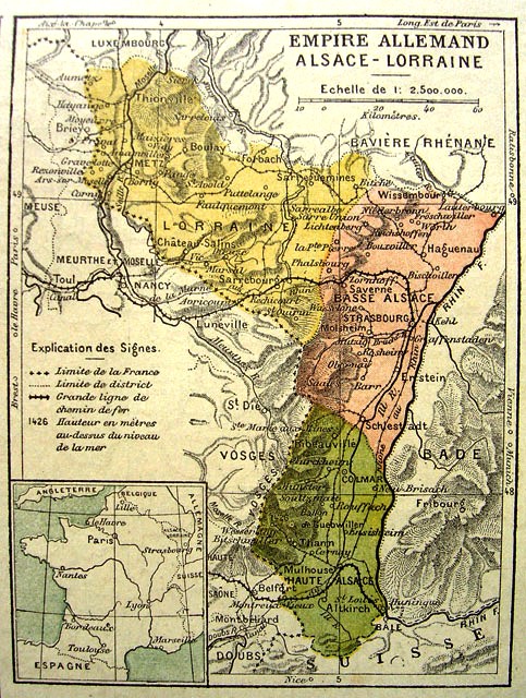 La frontière franco-allemande de 1871 à 1918.