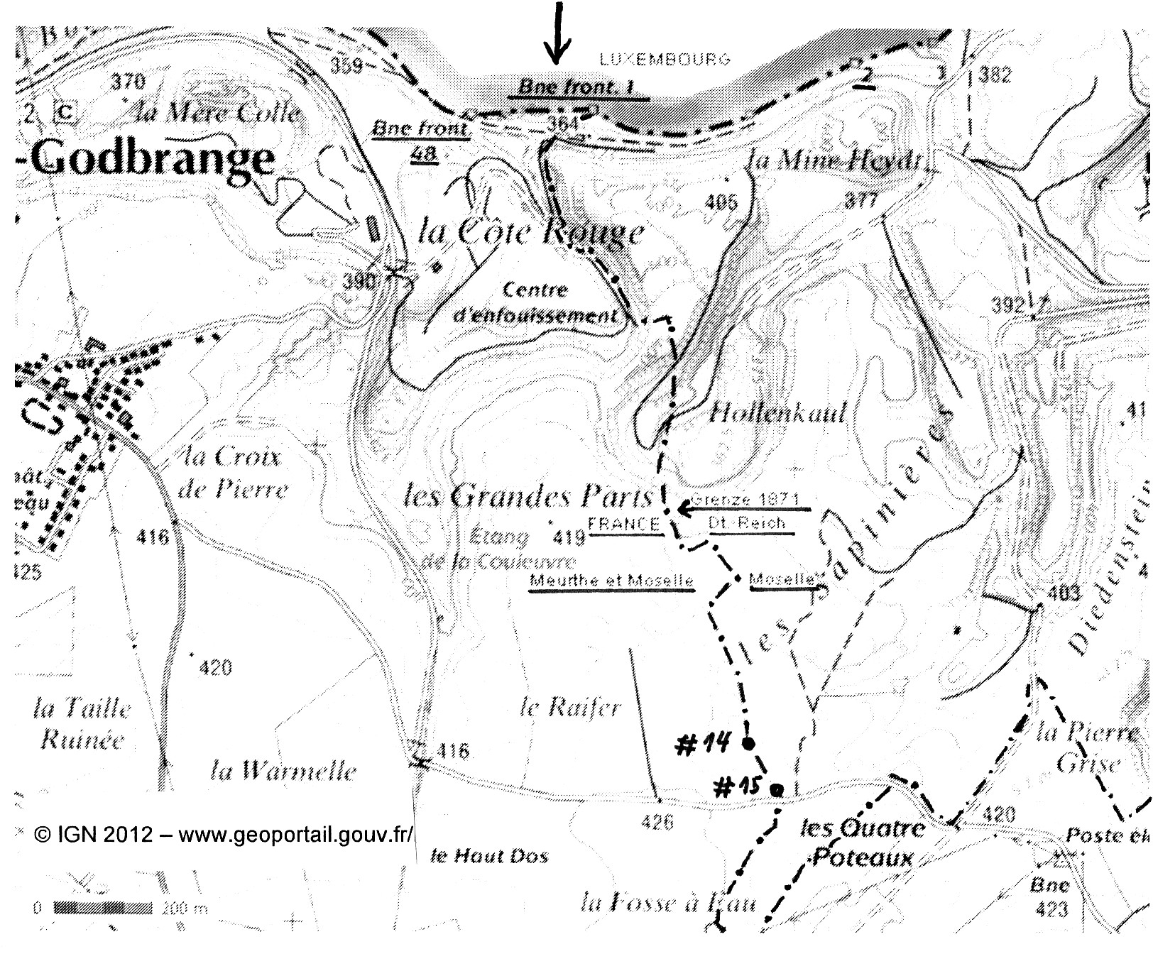 Grenzsteine # 14 – # 15; Hussigny-Godbrange – Rédange