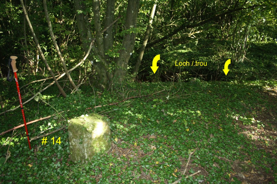Pfeil = Stein # 15; im Wald links = Stein # 14
